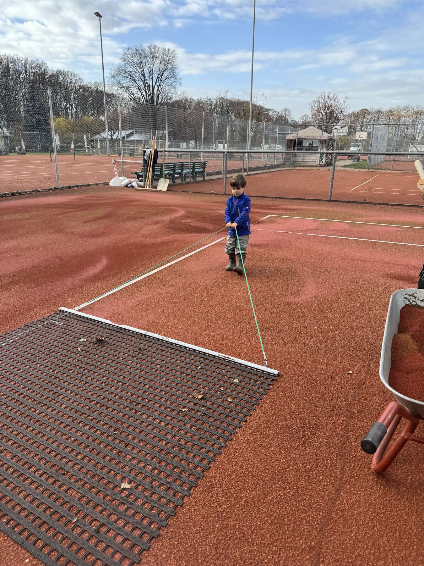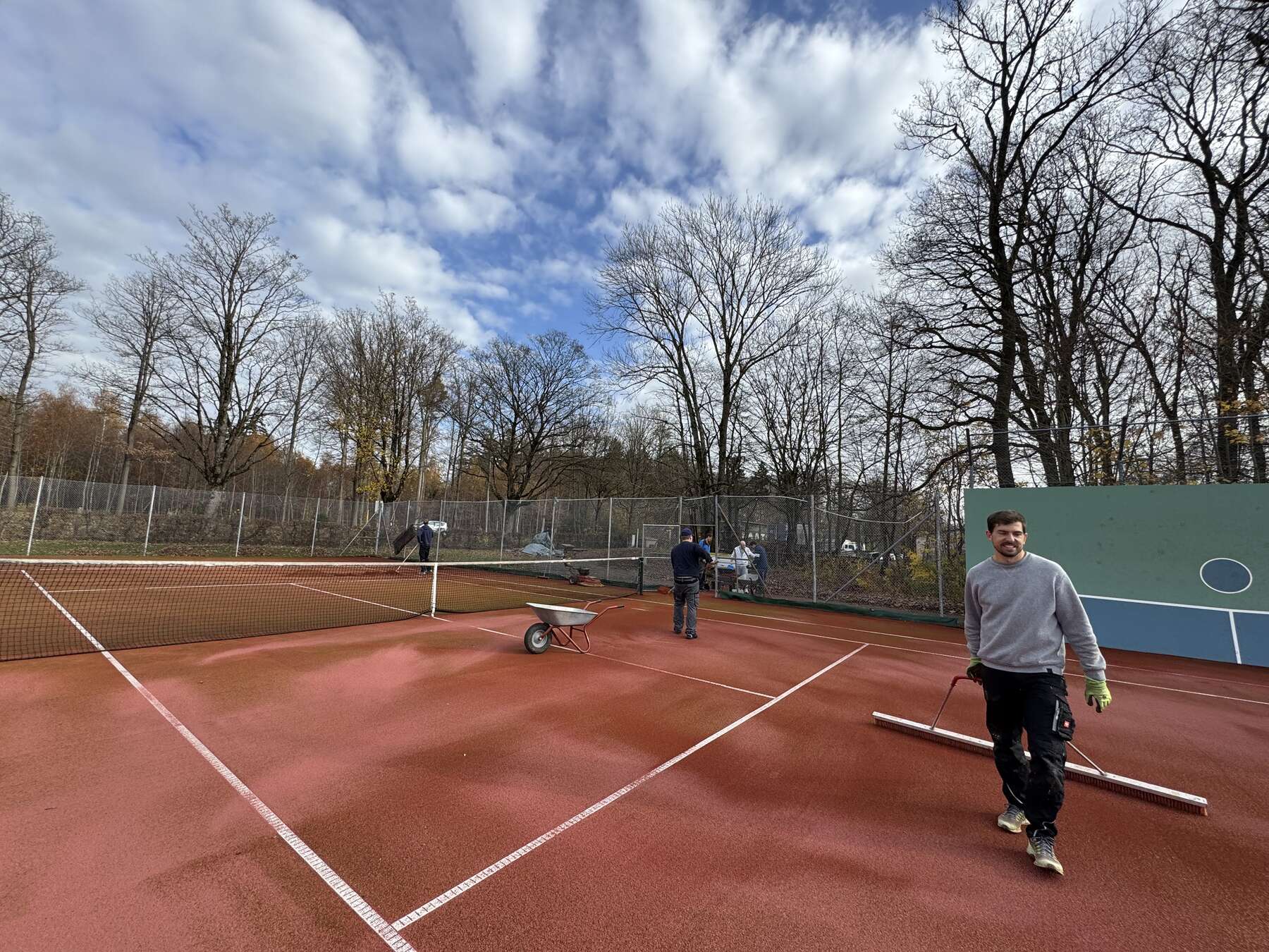 Heute haben 10 fleißige Helfer den Allwetterplatz wieder schön gemacht, Laub und Moos wurde entfernt und neues Granulat eingeworfen.