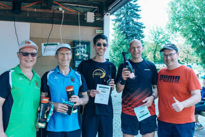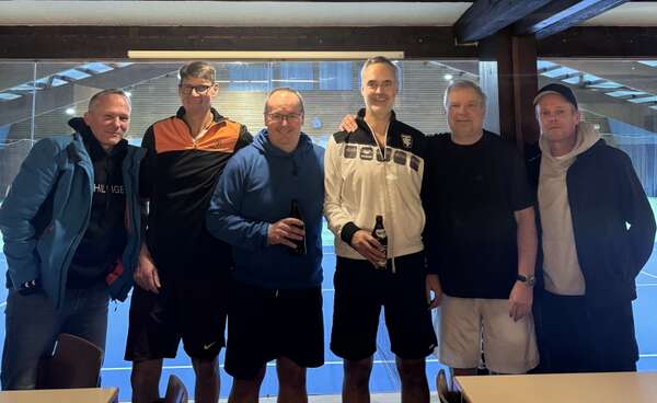 Trotz Verstärkung von Susanne Wittmayr von den Damen 50 ist es uns leider nicht gelungen den Gesamtsieg zu erringen. Die Einzelgegner(-innen) waren sehr stark, so dass nur Stefan Meyer mit einer Energieleistung einen Einzelerfolg erzielen konnte. Auch das eine Gegnerische Doppel war haushoch überlegen, sodass nur Julie Graf bei ihrem "Hobby Einstand" mit Volker Schmidt einen Sieg erringen konnte. Das Gesamtergebnis fiel mit 4:2 deutlich aus. Im Gegensatz zum letzten Jahr und in anderer Besetzung und damals in einer 6er Mannschaft haben wir dieses Jahr nicht geschafft, den Gesamtsieg zu wiederholen. Bei hervorragender Bewirtung und trockenen Verhältnissen (war ja auch in der Halle in Filderstadt) haben wir einen sehr schönen Tag mit Abschluss auf der Terrasse bei Fleischpflanzerl und Kartoffelsalat mit Weizenbier (natürlich nur wer wollte) bei lieb gewonnen Freundinnen und Freunden verbracht. Geschrieben: Erwin