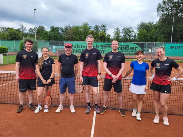 Am 11.05. sind wir Hobby Herren als Auswärtsspiel gegen G.W. Köngen 1 angetreten.Einzel haben Norbert, Uwe, Erwin und Takeshi gespielt. Während Norbert nach dem 6:2, 0:6 im Match Tie Break mit 10:7 leider verloren hat, haben Uwe 1:6: 4:6, Erwin 6:4, 2:6, und Match Tie Break 2:7, und Takeshi 1:6, 1:6 gewonnen. Nur ein Sieg im Doppel konnte uns zum Gesamtsieg bringen, aber so einfach war es nicht. Nach dem verlorenen Satz mit 6:4 haben Uwe und Takeshi mit 2:5 geführt, aber letztendlich 7:6 verloren! Dagegen haben sich Norbert und Hans-Jörg mit 4:6, 6:4, und Match Tie Break mit 9:11! behauptet und den Tag gerettet! Spannende Spiele!Der Gastgeber war nett und freundlich. Zum Abschluss haben wir mit Pizza und Bier eine schöne Zeit zusammen verbracht. Die Sonne schien auch wunderbar. Es war ein guter Tag!