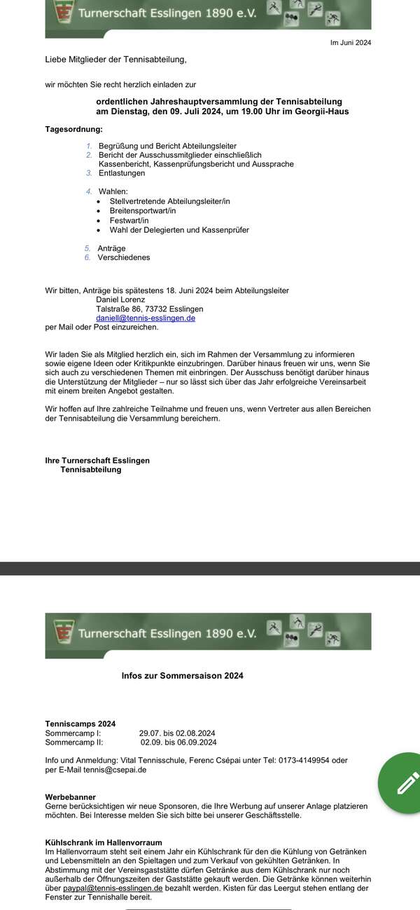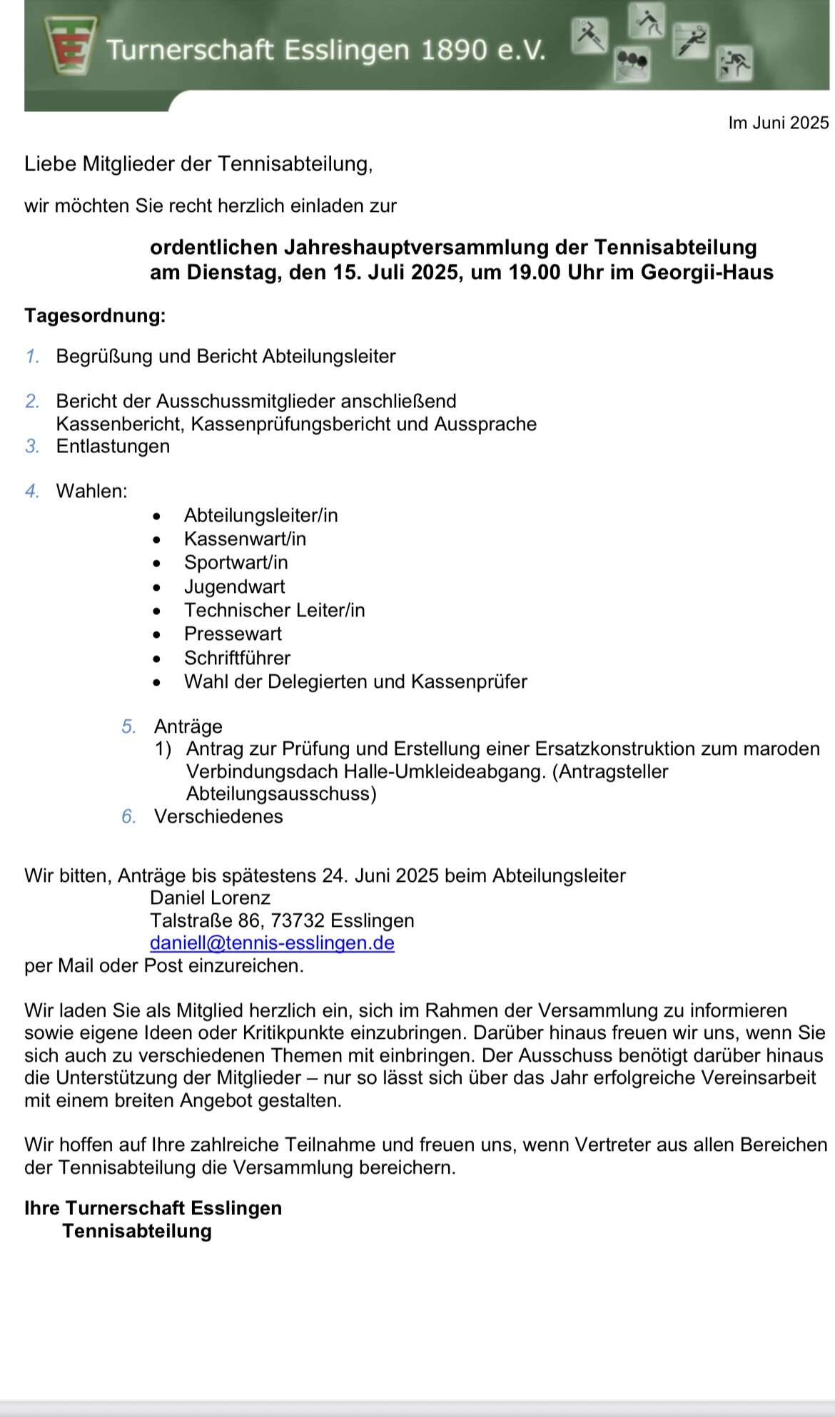 Liebe Mitglieder der Turnerschaft Esslingen,