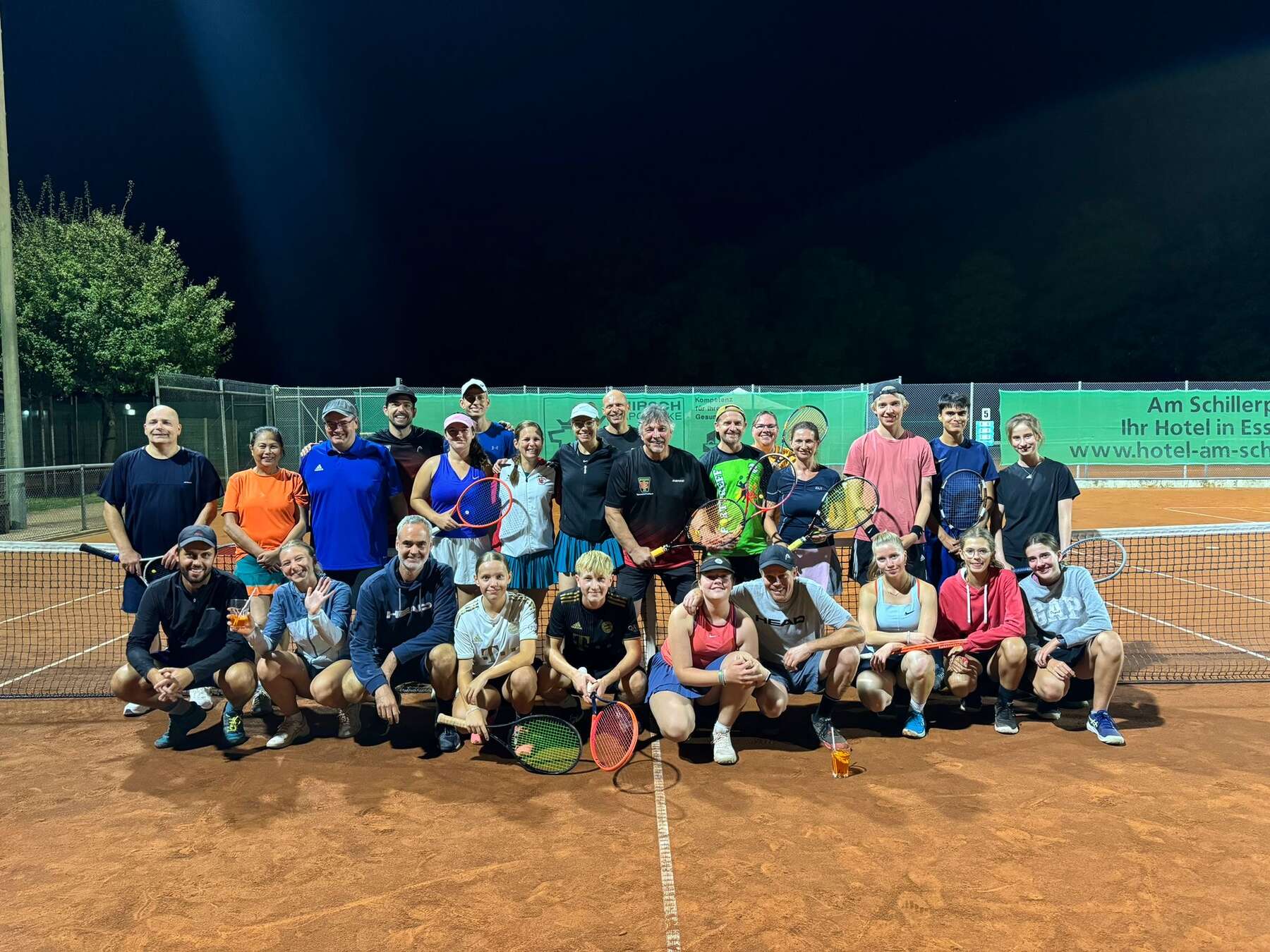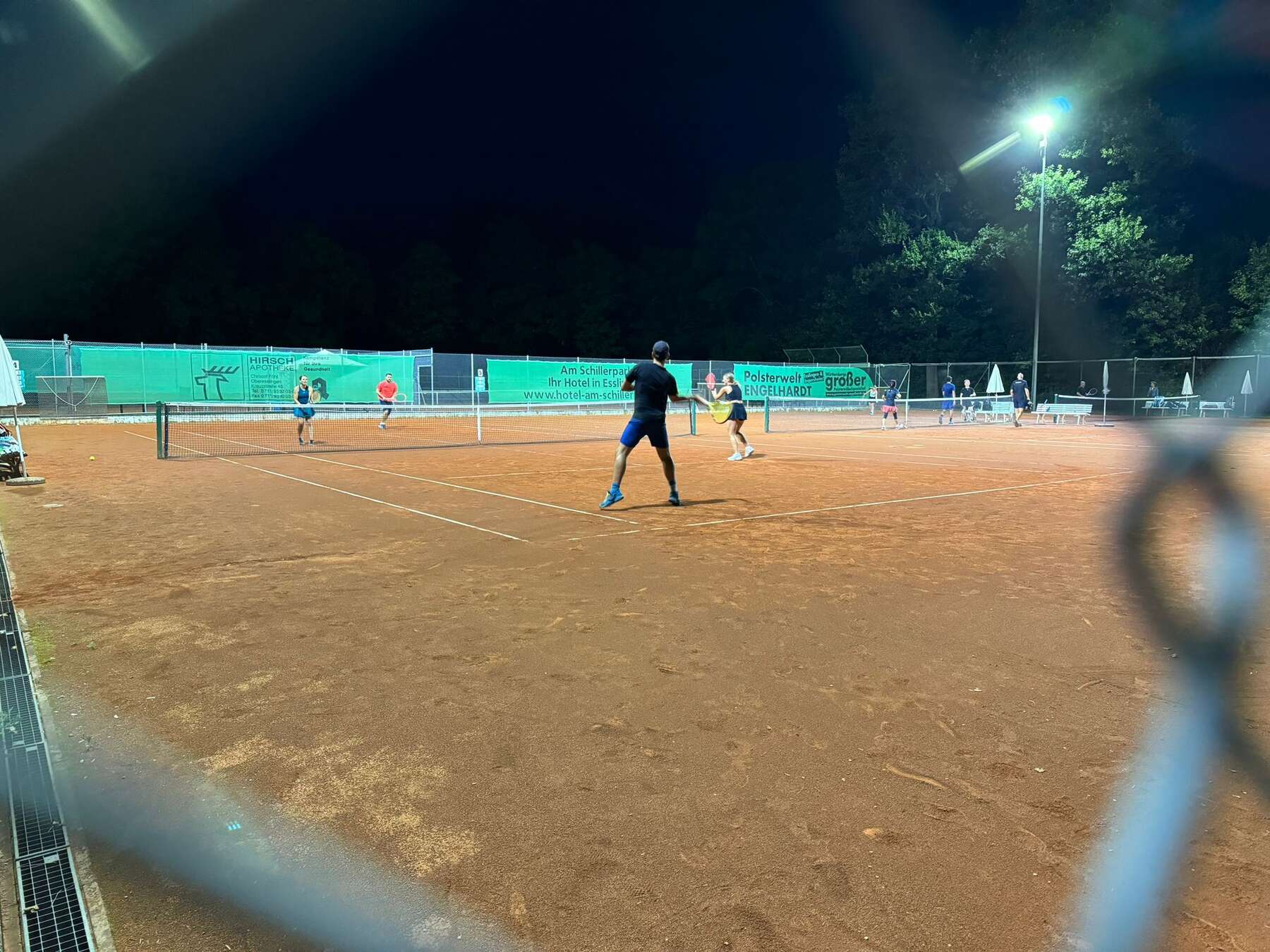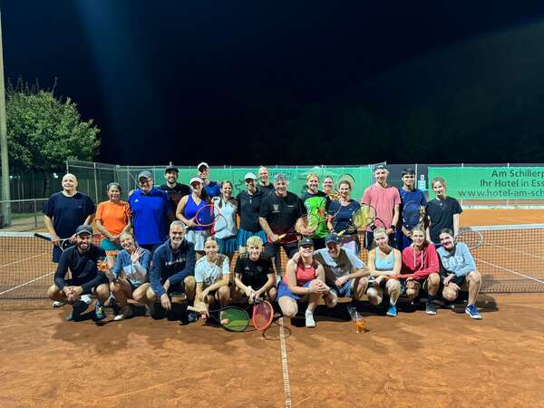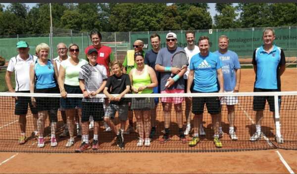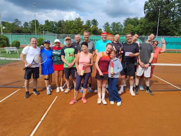Die Beteiligung mit 30 begeisterten Tennisspielern war sehr gut. Die Stimmung war hervorragend, es waren tolle und sehr ausgeglichene Spiele zu sehen. Die "besseren" Spieler mussten als Handicap mit Kinderschlägern antreten.