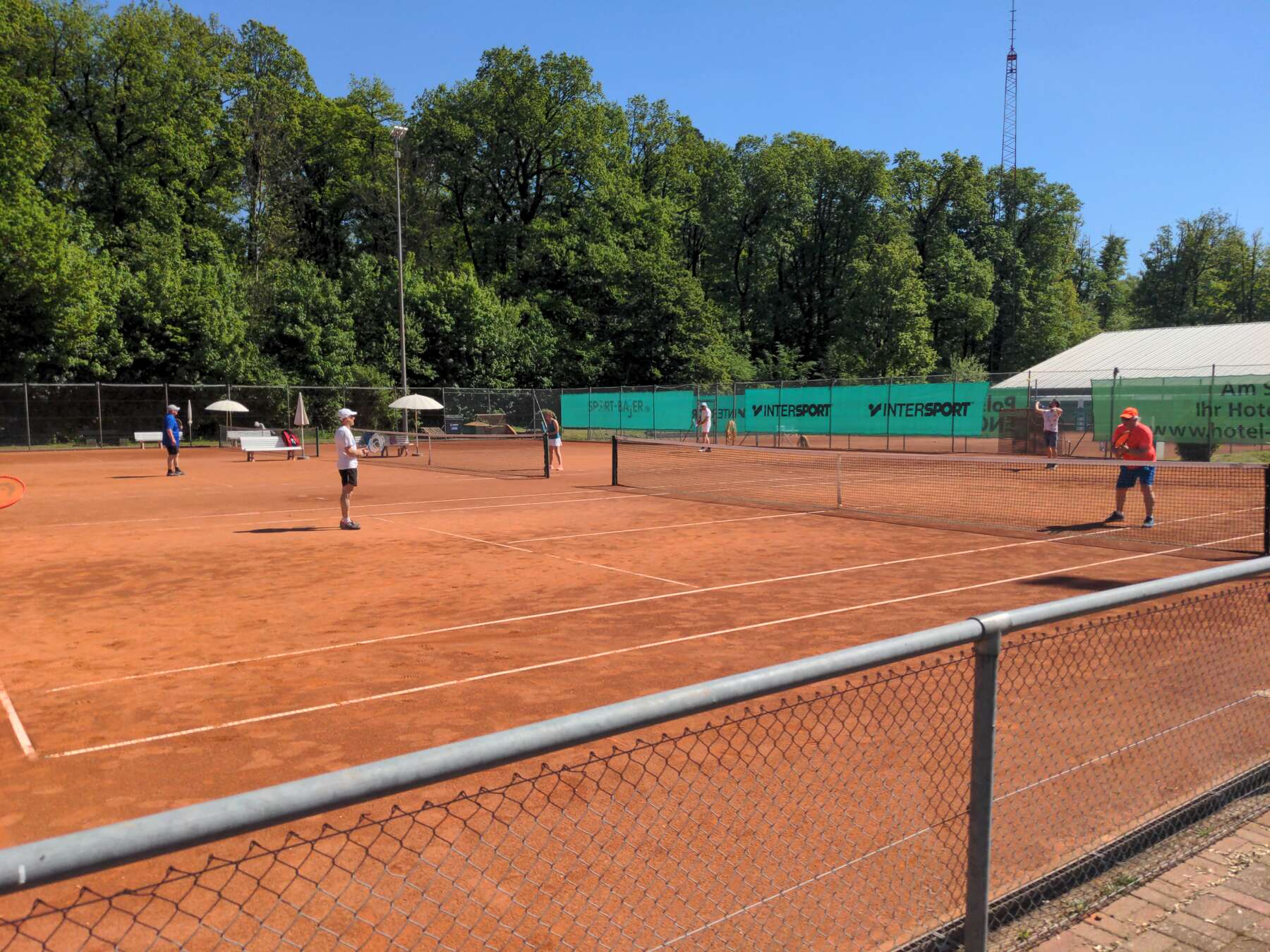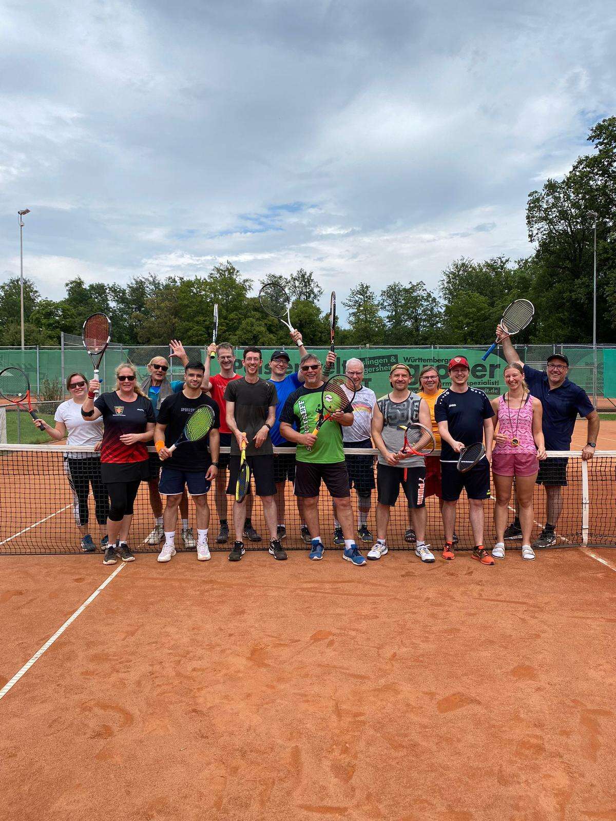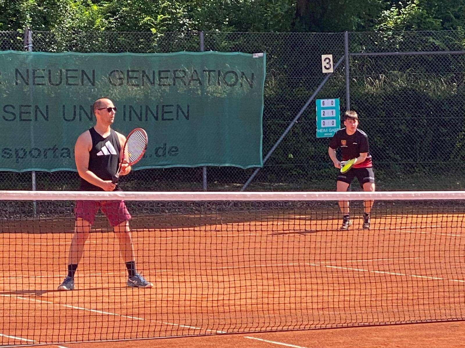 Die Beteiligung mit 30 begeisterten Tennisspielern war sehr gut. Die Stimmung war hervorragend, es waren tolle und sehr ausgeglichene Spiele zu sehen. Die "besseren" Spieler mussten als Handicap mit Kinderschlägern antreten.