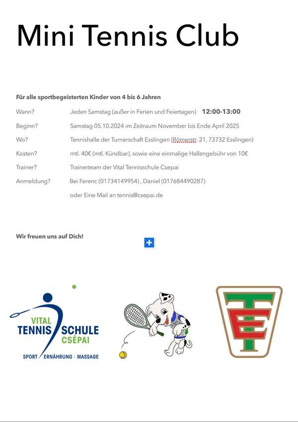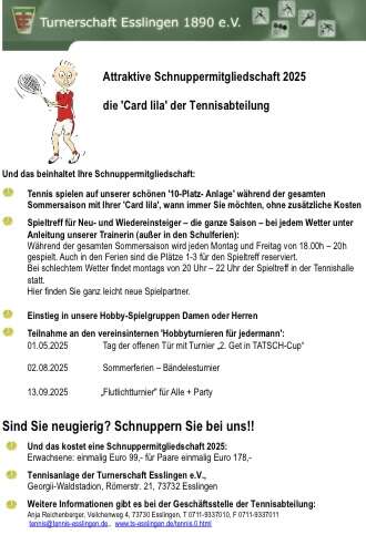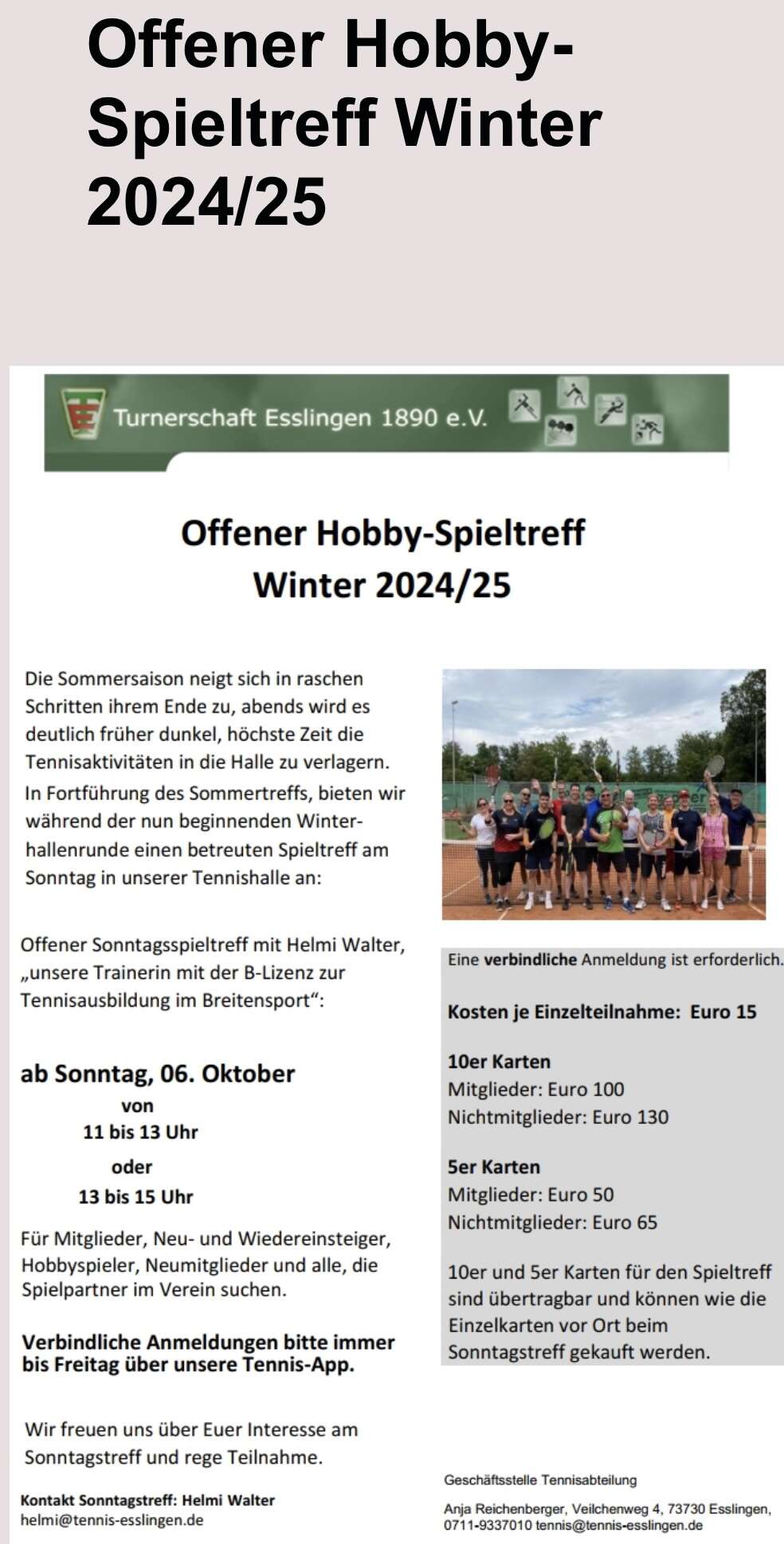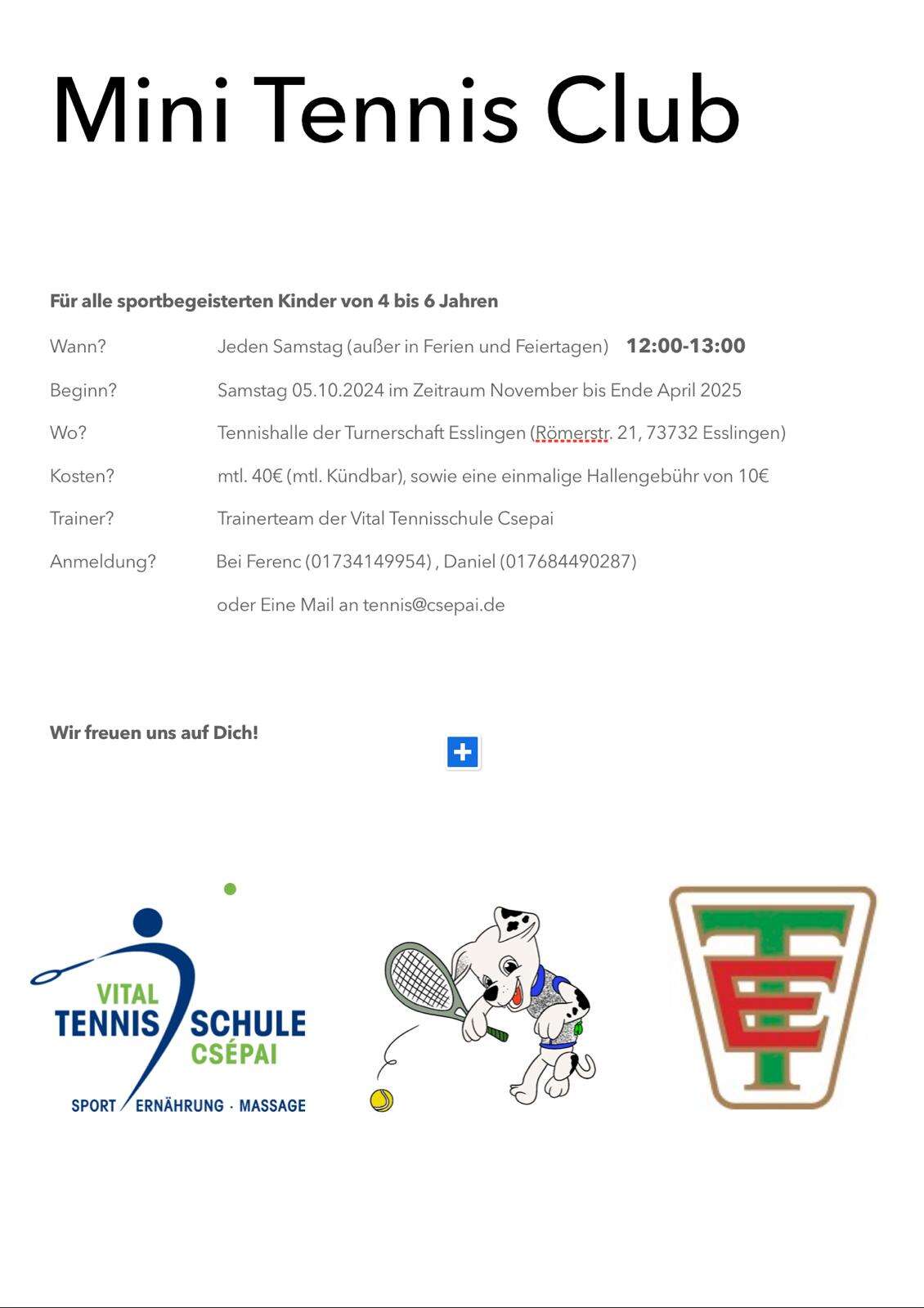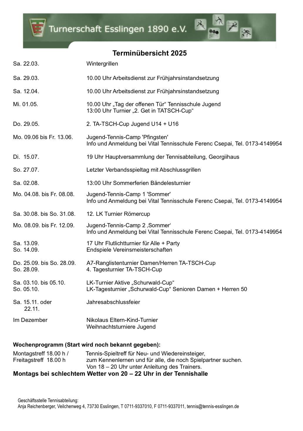 Anmeldungen bis 17.12.25 direkt bei den Trainern oder über die Geschäftsstelle unter tennis@tennis-esslingen.de