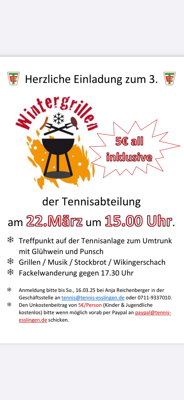 Jetzt noch schnell fürs WINTERGRILLEN am Sonntag ab 15.00 Uhr anmelden! ❄️🔥☃️🌭🥖☕🥂☃️🔥❄️
