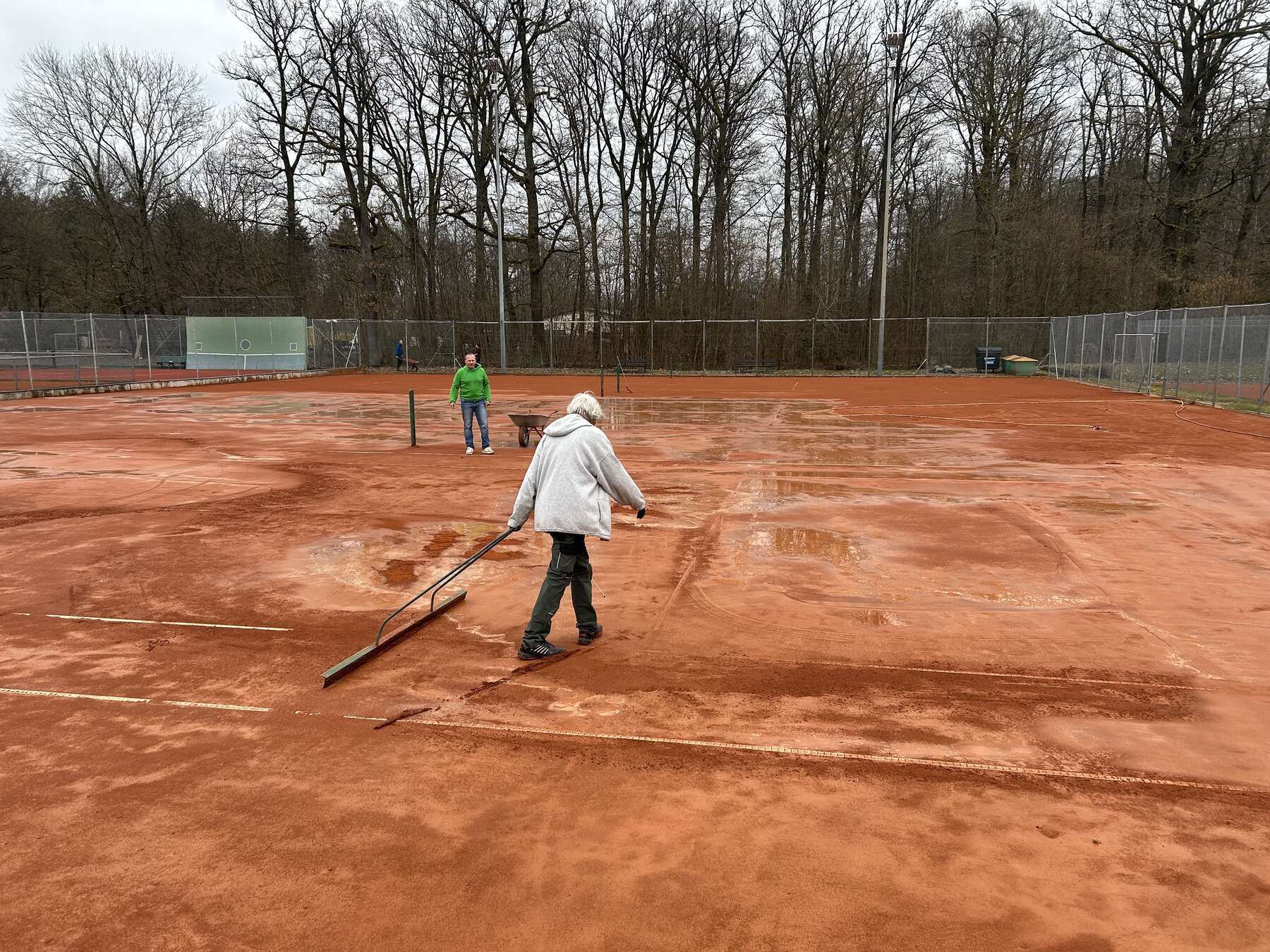 Durch die Bauarbeiten kommt es rund um das Gebäude zu Einschränkungen. Bitte nutzen Sie keine Wege, die abgesperrt sind. Zudem bitten wir darum, bei der Abkürzung über die Terrasse zur Tennishalle mit ausreichendem Abstand zur Baustelle am Haus vorbeizugehen. Aufgrund der Arbeiten kann es zeitweise zu Verschmutzungen auf den Wegen kommen.