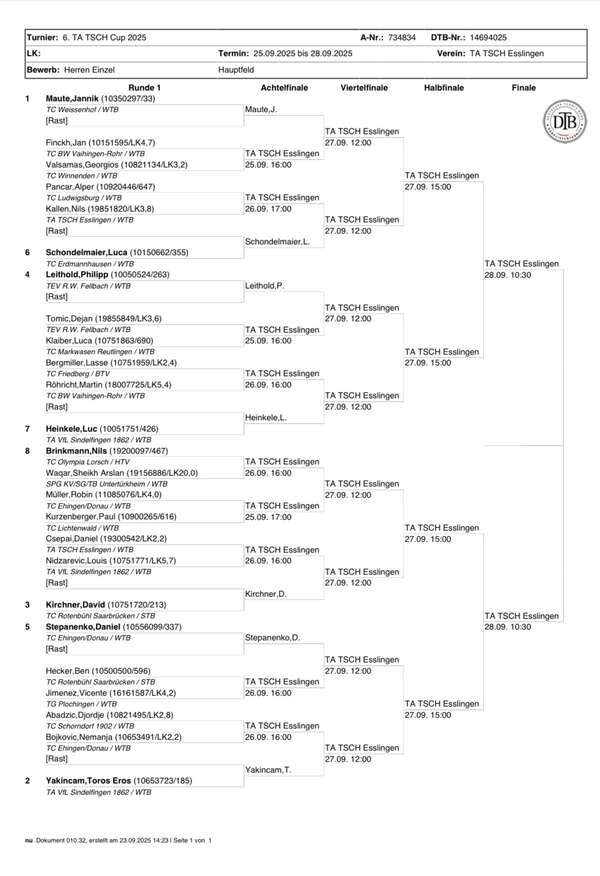 Unser Trainer Daniel Csepai konnte sich den Titel sowohl bei den Herren A, sowie bei den Herren 30 sichern. Bei den Herren 30 holte er sich den Titel ohne Satzverlust. Bei den Aktive musste er lediglich im Viertelfinale gegen seinen Vereins- und Teamkollege Nils Kallen einen Satz abgeben (4:6 6:1 10:4).