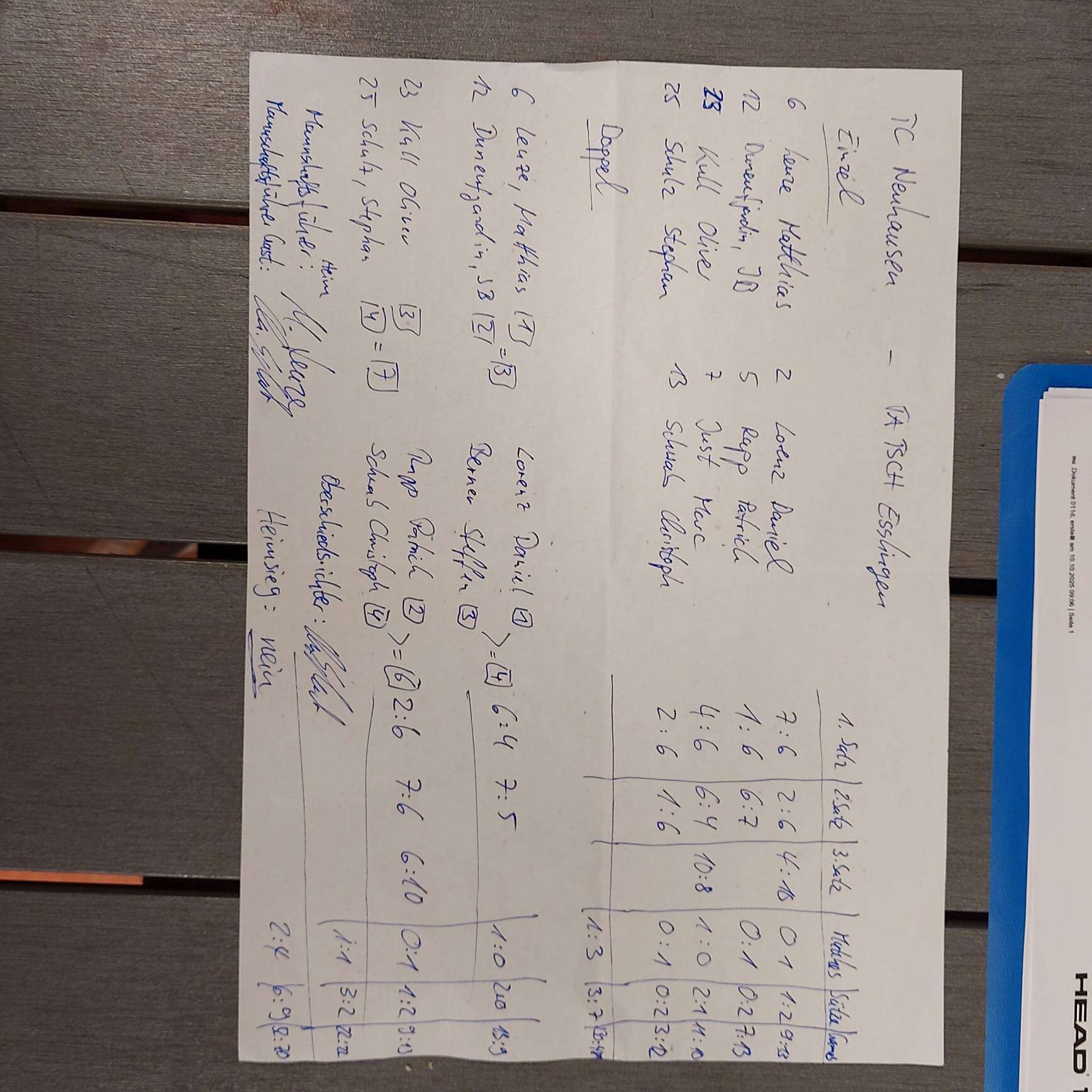 In der Doppelrunde teilten sich Neuhausen und die TATSCH die Punkte. Steffen Berner als H40er wurde im Doppel eingesetzt, jedoch ging dieses Doppel 1 verloren.